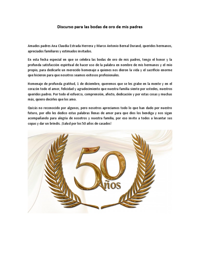 Discurso Para Las Bodas De Oro De Mis Padres Amor