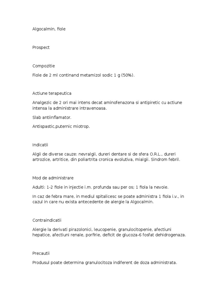 Prospect Algocalmin Solutie Injectabila Dureri Acute