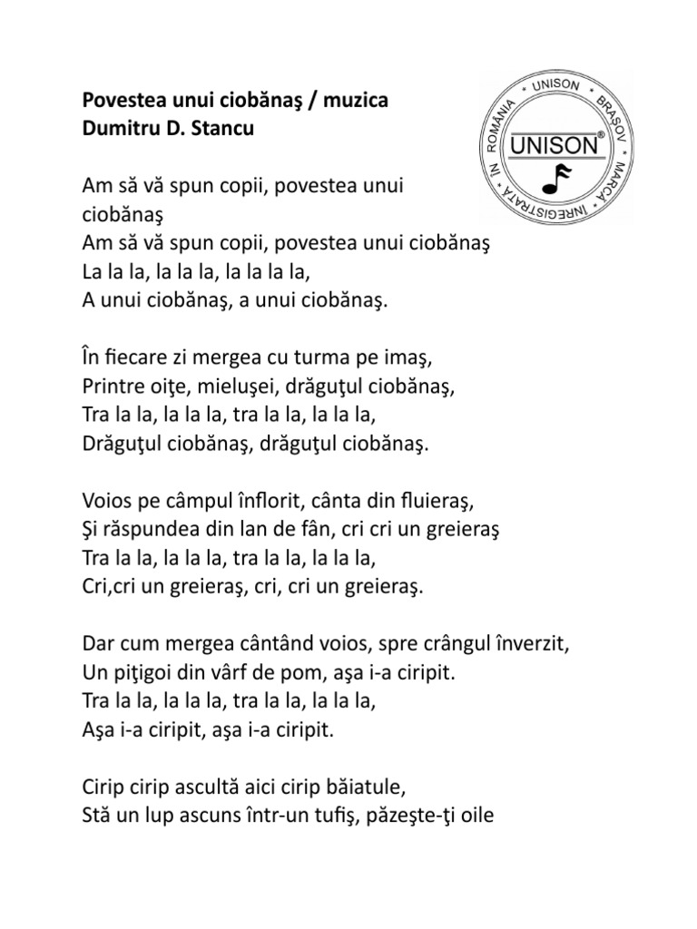 Versuri Cantec Povestea Unui Ciobanas