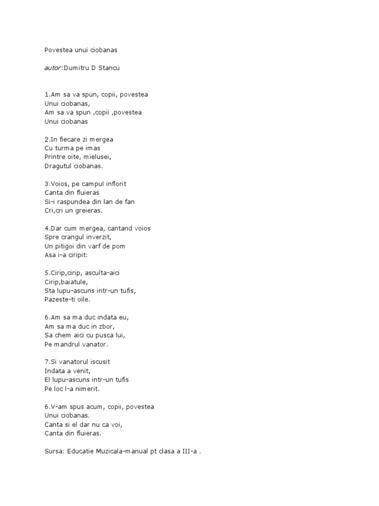 Versuri Cantec Povestea Unui Ciobanas