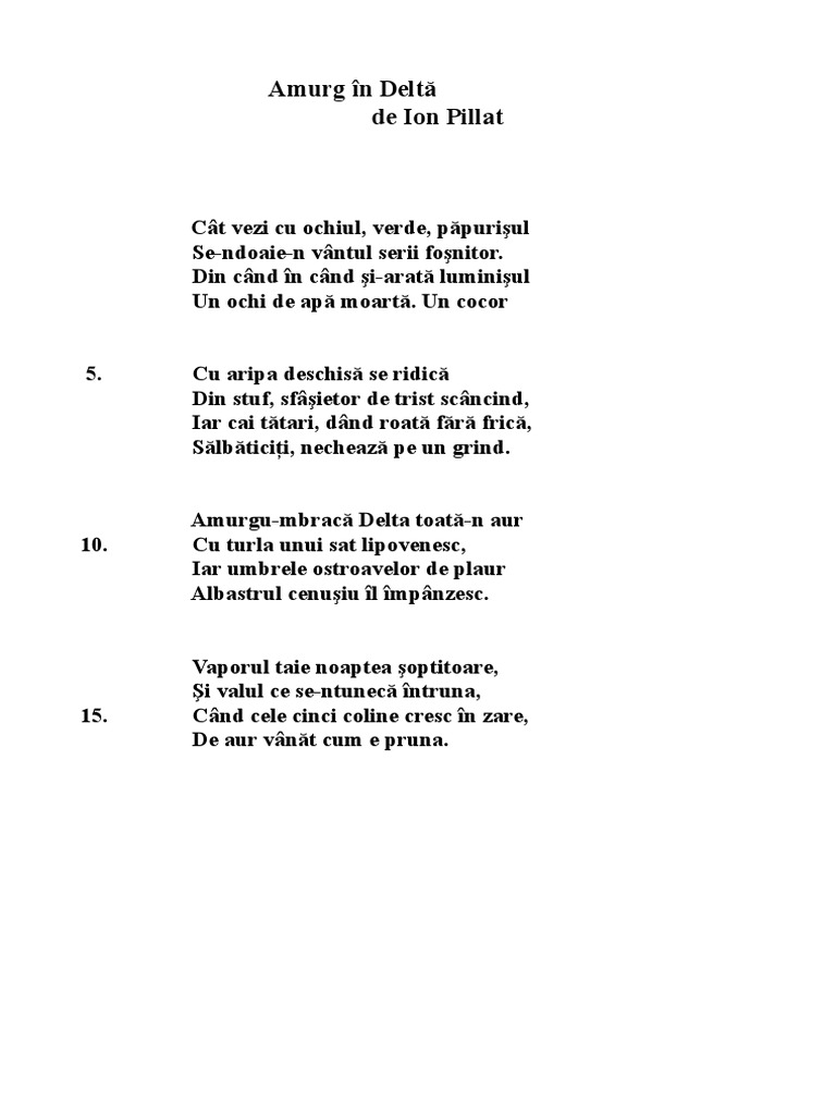 Exercitii Limbaromana Poezia Amurg In Deltă Ion Pillat