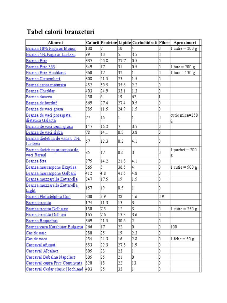 Valori Nutritionale Cas De Vaca Calorii Proteine Carbohidrati