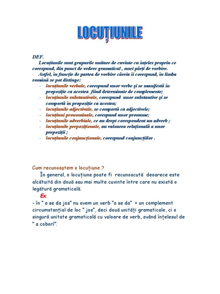 Def Locuţiunile Sunt Grupurile Unitare De Cuvinte