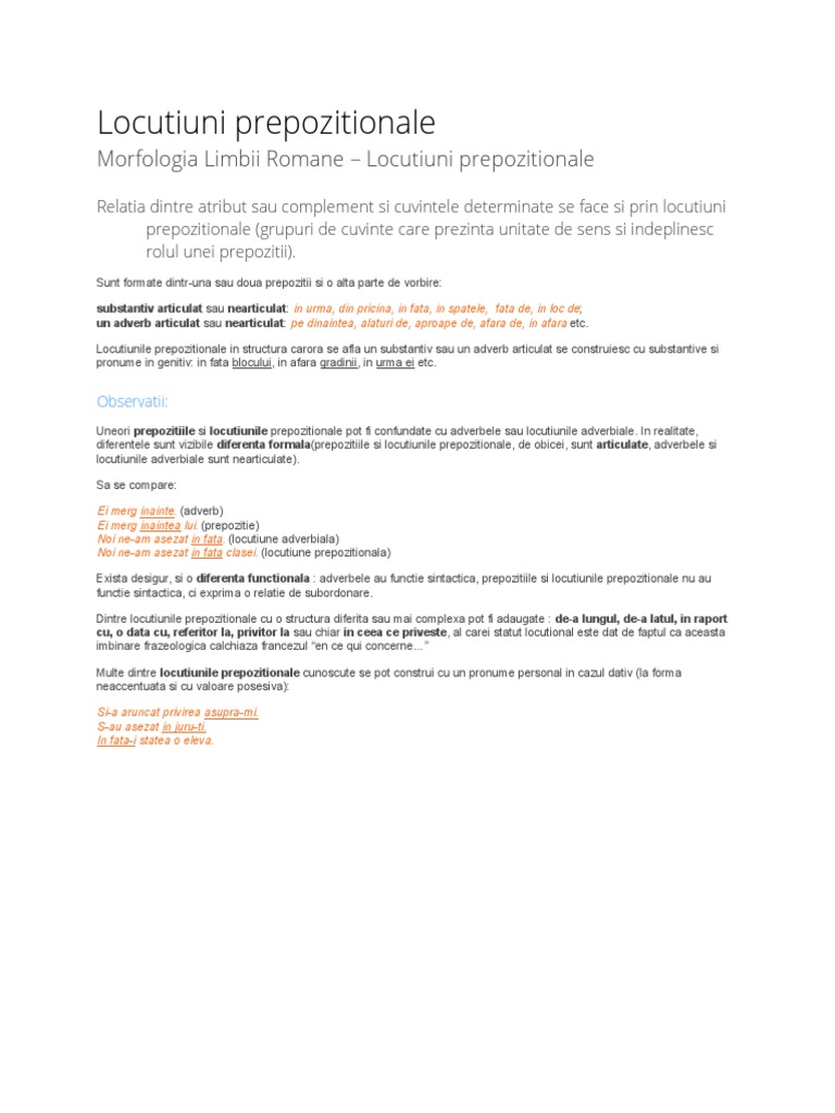 Locutiuni Prepozitionale