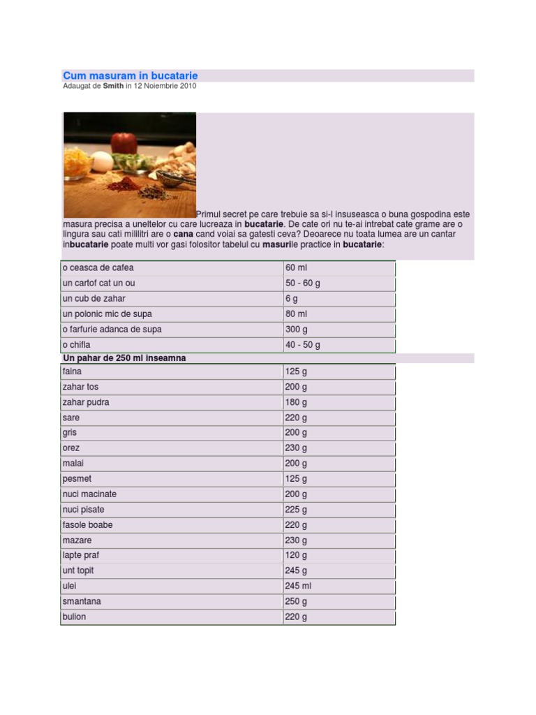 Unități De Măsură Băbești In Bucătărie Cate Grame Au Cana și
