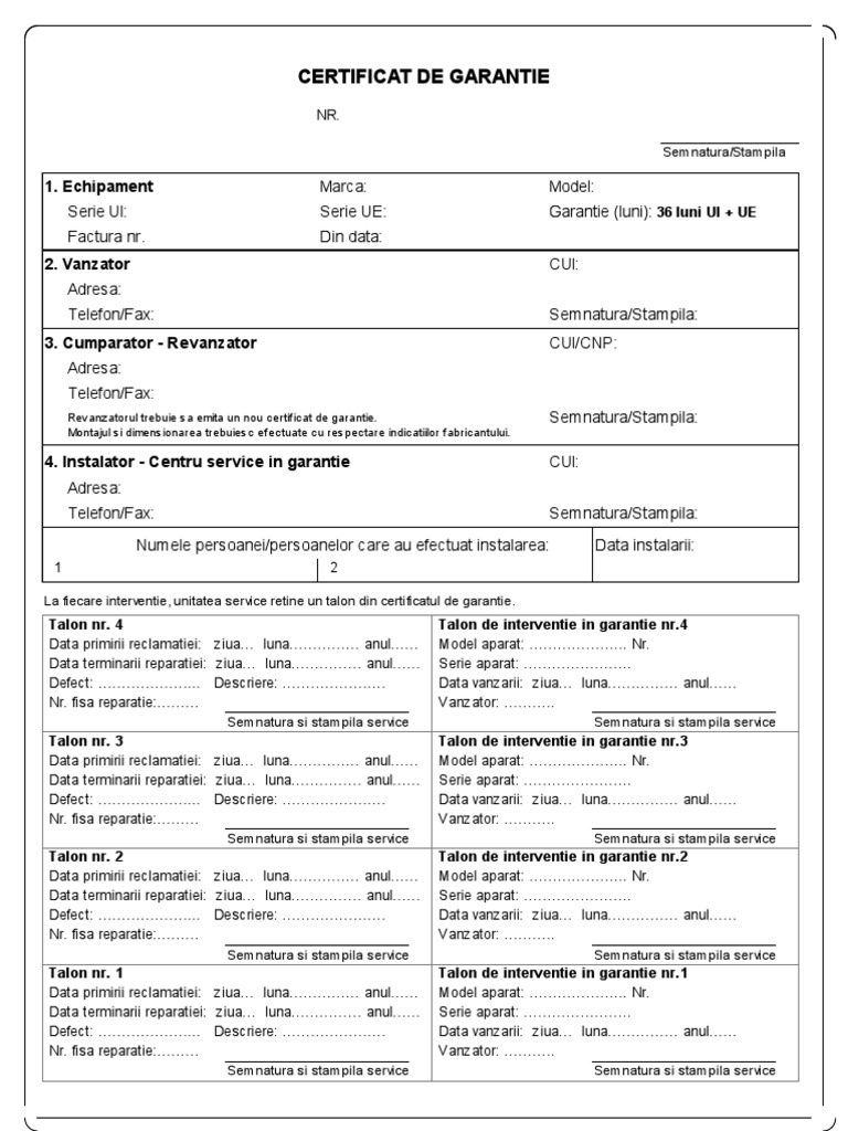 Certificat De Garantie Si Conformitate Model