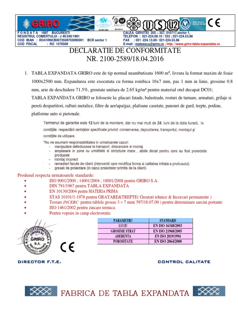 Certificat De Conformitate Si Garantie
