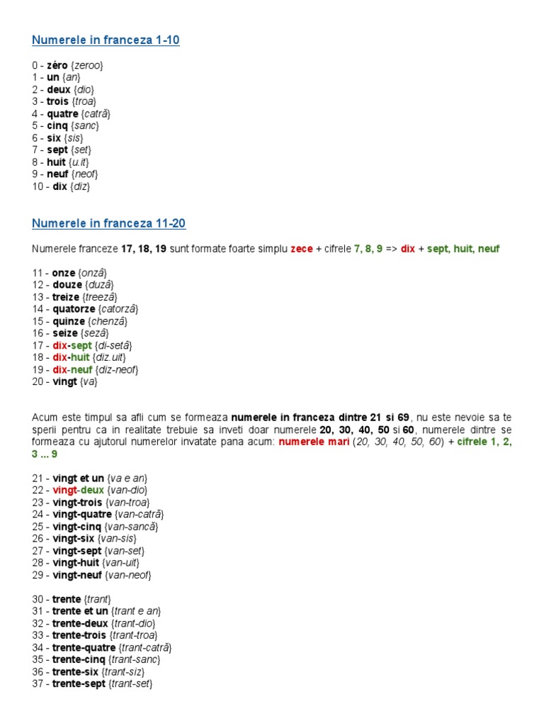Numerele In Franceza De La 1 La 100