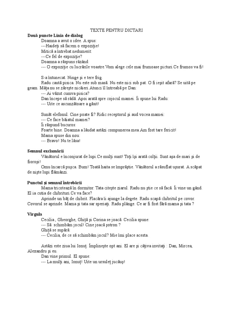 Linia de dialog este realizată special pentru scoalaintuitext ro de iuliana drăgan specialist intuitext în educație și profesor pentru învățământul primar astăzi elevii clasei a ii a au citit fragmente din cartea amintiri din copilărie de ion creangă apoi au scris un text după dictare. 1 a spus. Texte pentru dictări profesor simona pintea şcoala band judeţul mureş ia i a 1. Marian dorin scoala gimnaziala nr 192.