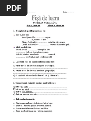 Fișă De Lucru Intr O Intr Un Dintr O Dintr Un