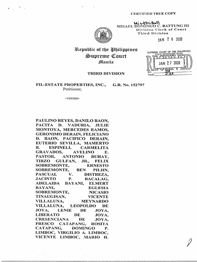 Fil Estate Properties Inc Vs Paulino Reyes Et Al
