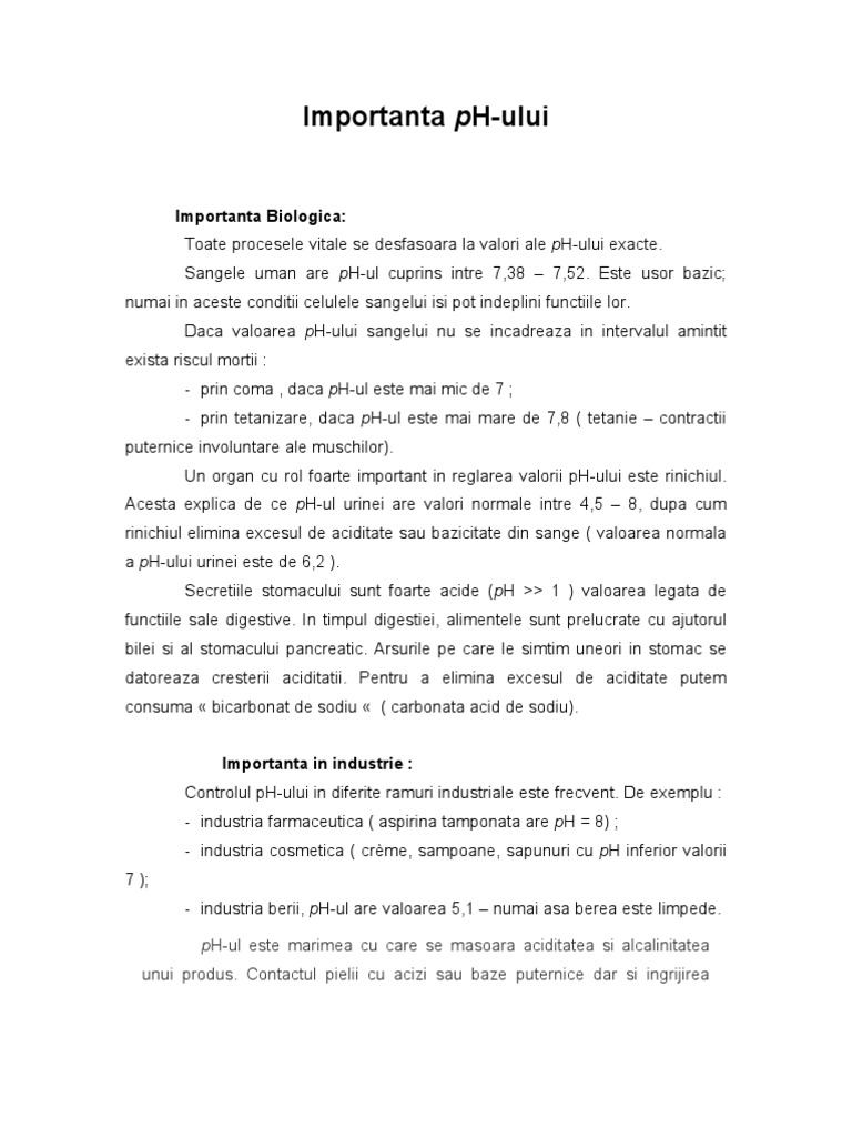 Doc Importanta Ph Ului In Industrie Havriliuc Luminita