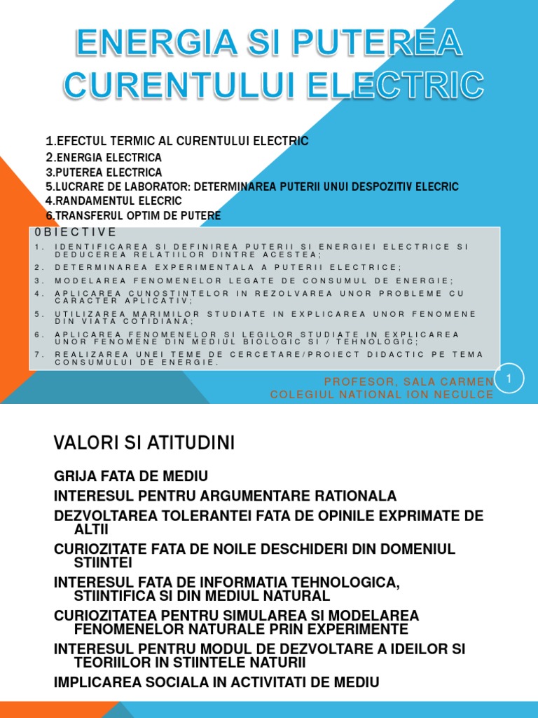 Energia Si Puterea Curentului Electric